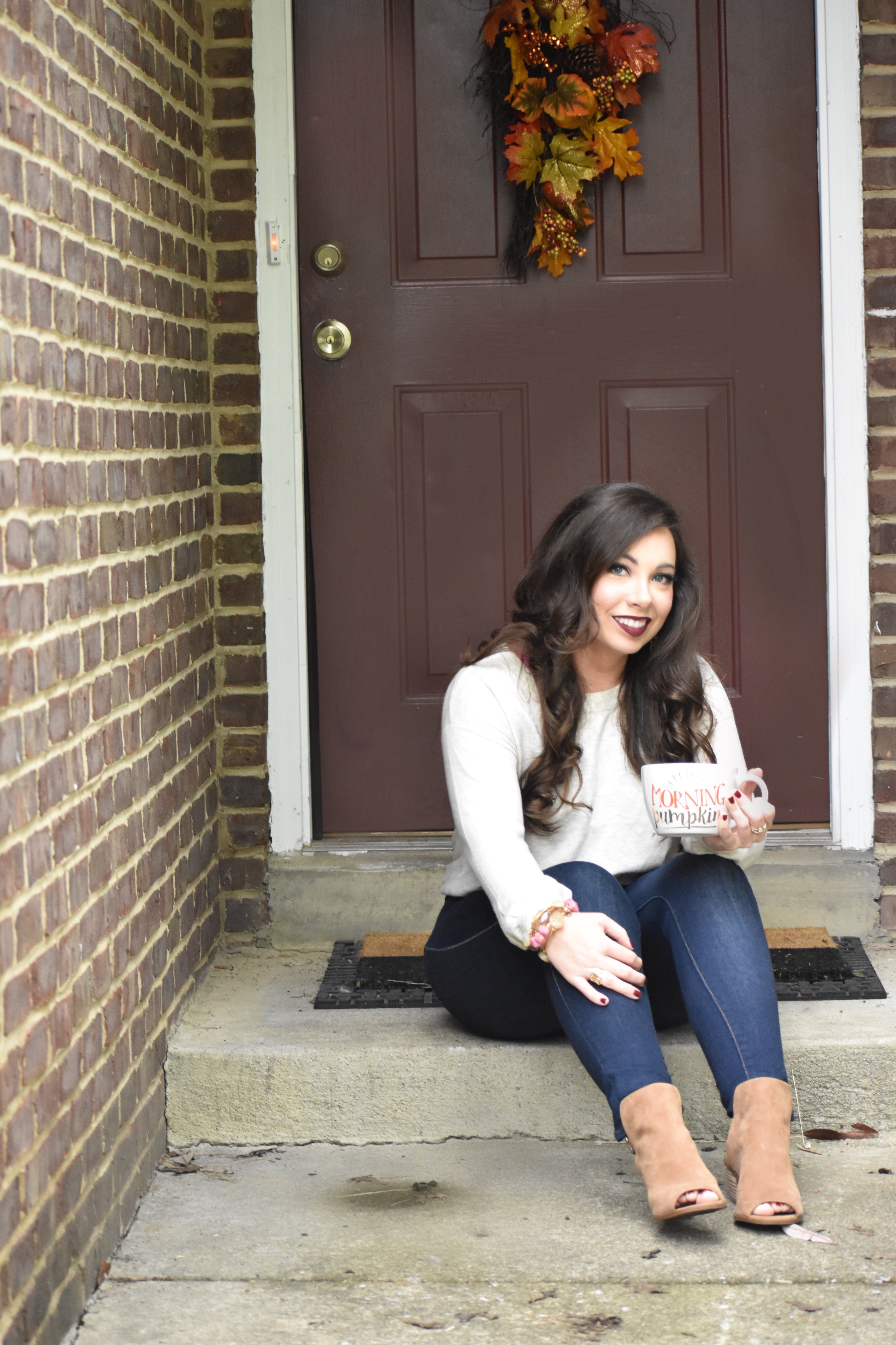Alright, I’ve withstood the pumpkin phenomenon for as long as I possibly could… The basic white girl in me (and that’s in all of us.. don’t even act like you don’t have it in you too) is just dying for pumpkin EVERYTHING! Mugs, candles, body wash, deep fried pumpkin roll. Like, you name it and I’m all over some pumpkin stuff. Even in my decor I have been wanting to put out our pumpkin decorations (Sorry, Meg) since the middle of August. However, I have refrained from doing so until now. I know, you can give a round of applause for my self control. (Only joking) Anyway, with fall comes a few of my favorite things: football, bonfires, festivals, cozy movie nights at home, fall nail and lip colors, pumpkin patches, and the lovely crisp fall air that allows us to wear those cozy hoodies we adore. With this post I felt cozy, and like I could do any of the things that I love most about fall. And what do we do in fall? We gather. As seen in the sign below. I just can’t articulate enough how much I love everything that goes along with autumn and the warm cozy feeling it gives me inside. With that being said, the outfit was extremely simple to put together and it can be found just a click away at the bottom of the page. I hope you’re enjoying the lovely start to the season we’re having. Happy Fall Y’all! XOXO