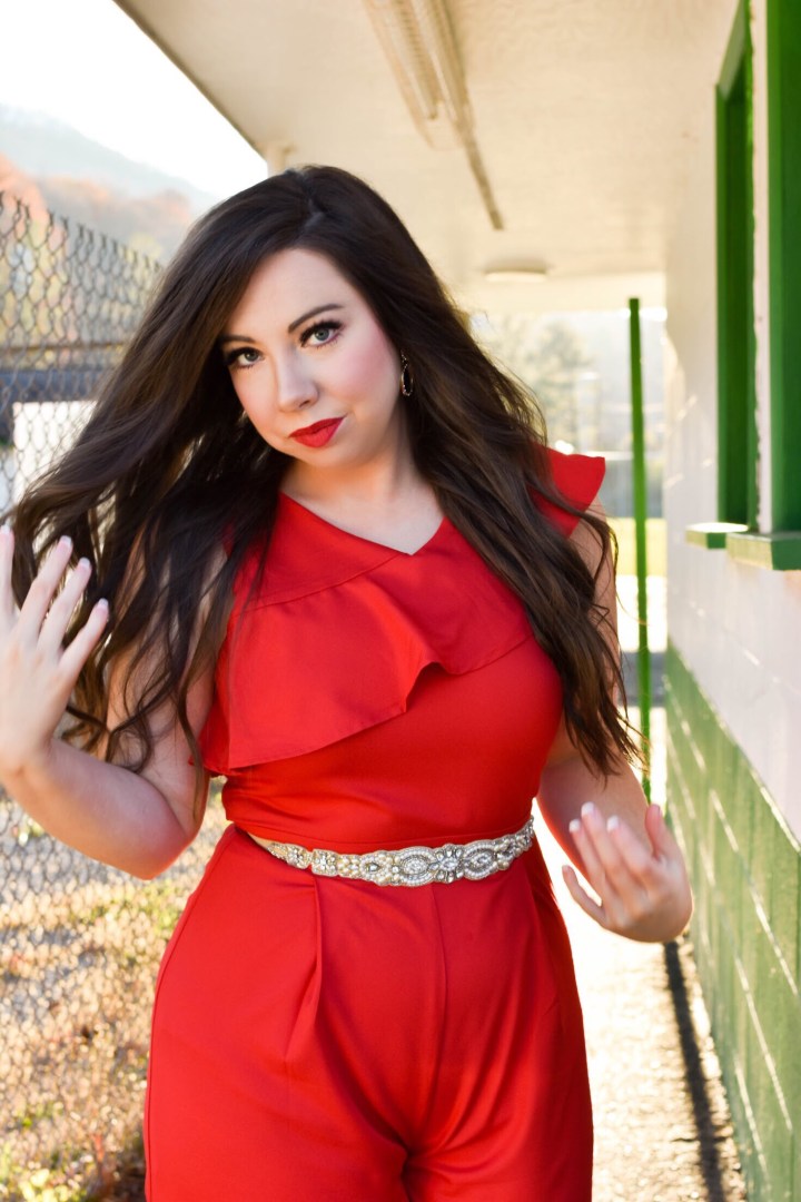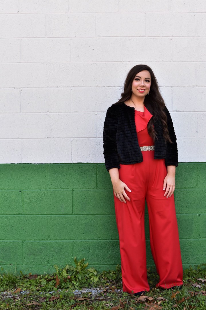 I’m not really sure what it is with Francesca’s and their window display game, but I am here to tell you that it is strong. Every time I walk past this store I could legitimately buy everything on display. This jumpsuit being one of the eye catching ensembles that had me at hello. Ruffles, if you couldn’t already tell, are a weakness of mine. Add a ruffle detail to anything and I’m like “YASSSSS, I’ll take it”. I’m a red kind of girl. To me, royal blue and a vibrant red look good on anyone, any skin tone, and any hair color. Perhaps I’m wrong, but these are just two colors that I own a lot of and I think they look good on everyone. So, when I found this jumpsuit it obvi had to come home with me. Although I deemed this a holiday look the red can be worn for any occasion. It will make a statement in any room you walk into. Whether a holiday party, a Valentine’s Day dinner, or any special function you’re attending this jumpsuit is so easy peasy for any and all events you’re going to. I love a good jumpsuit because you can dress it up, or you can dress is down. I dressed this up with the glam belt and faux fur cropped jacket. However, if I wanted to soften it up a bit I might leave off the belt and add a cropped cream cardi for a more casual feel. You can see below that the jumpsuit obtains one sleeveless sleeve and one cap sleeve. Hence, this could easily be transitioned into spring and even some of those cooler summer nights if you wanted to. It’s a seasonal versatile piece that you can add to your closet and get the most for your money out of it. Red is a color that you can wear at any time of year. When you think about buying pieces like this stop and ask yourself, “How functional is this going to be for me”. If you have a difficult time trying to decide whether or not you’d wear it… with experience I can tell you that if you’re struggling with that question you probably already know the answer. Functionality is always best. Keep that in the back of your mind when you’re shopping. Hope everyone has a Merry Christmas. XOXO Stay lovely.